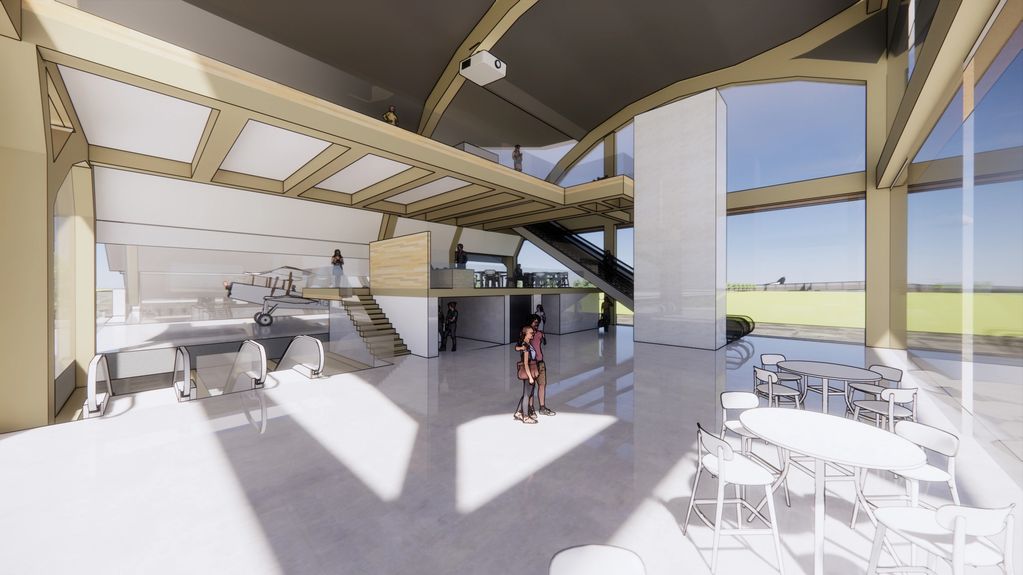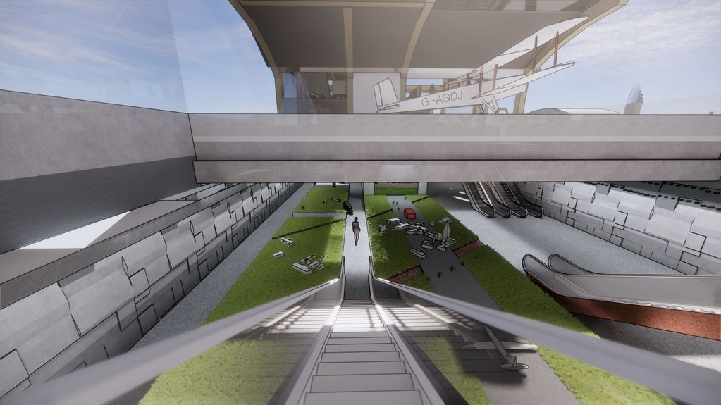 Whereas, the basement level; with escalators allowing visitors to feel like they are passing beneath the runway; unearthing history, entering a vault of a by-gone era of how the site was previously, before the demolition of Charlton village for Filton Airfield’s runway to cut through (captured as a model) in the basement.