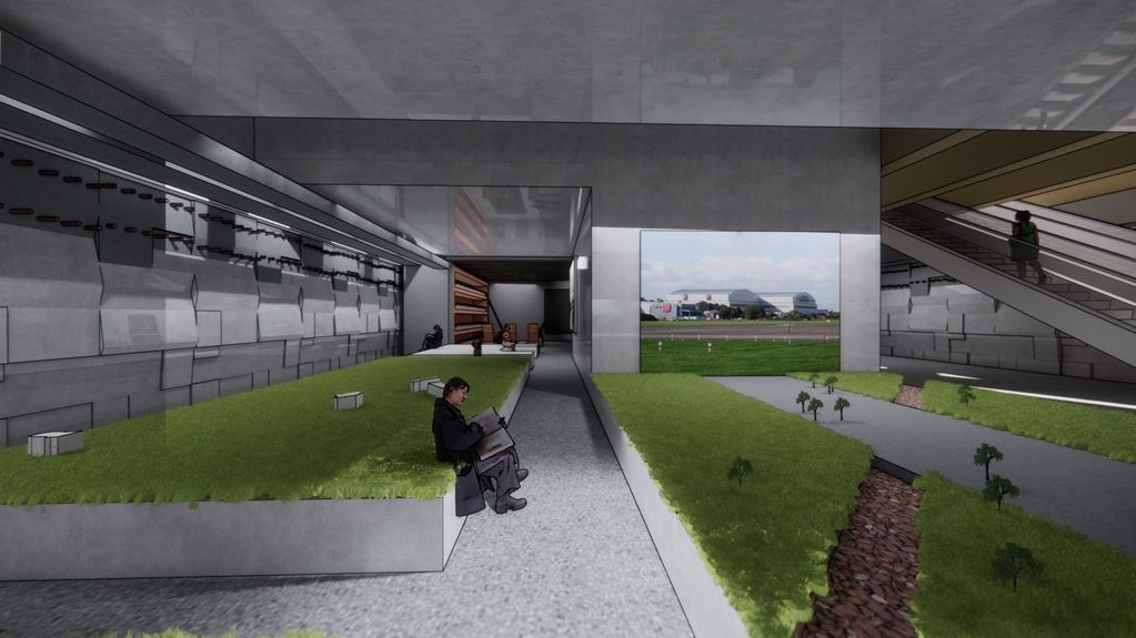 The proposal is a museum that looks to unpack the different levels of time periods of the former Filton Airfield site to pay homage to the site’s success within history, all the way through to modernity. The building’s geometry looks to address this. With the ground and first floor levels capturing surrounding views of the disused site of interest.