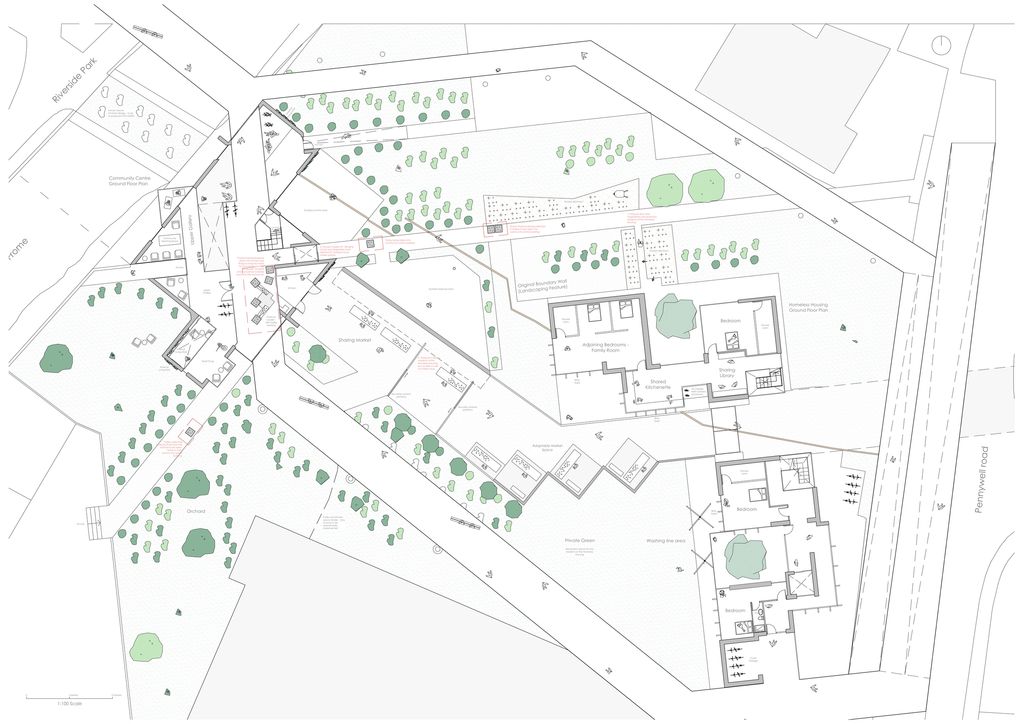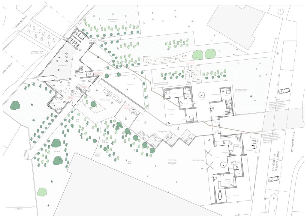 Ground floor plan, with integrated community green spaces: